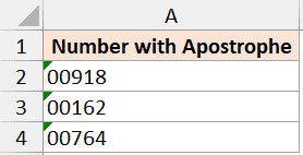 Dãy số được chuyển thành văn bản bằng cách thêm dấu nháy đơnDãy số được chuyển thành văn bản bằng cách thêm dấu nháy đơn