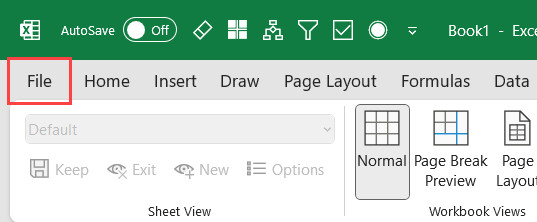 1. Mở bất kỳ tệp Excel nào và nhấp vào tab File (Tệp) ở góc trên cùng bên trái màn hình.